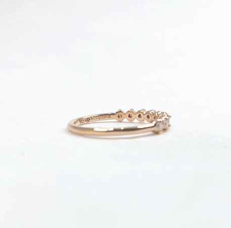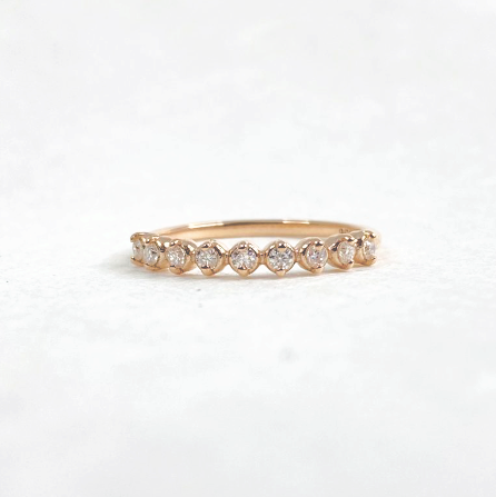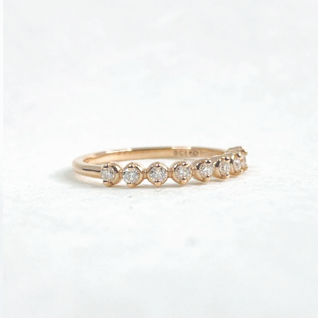 -1.2mm wide band with 9 x 1,7mm clear Brilliant cut Moissanites set in a rounded settings.