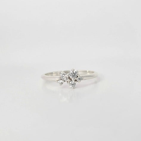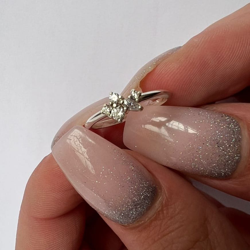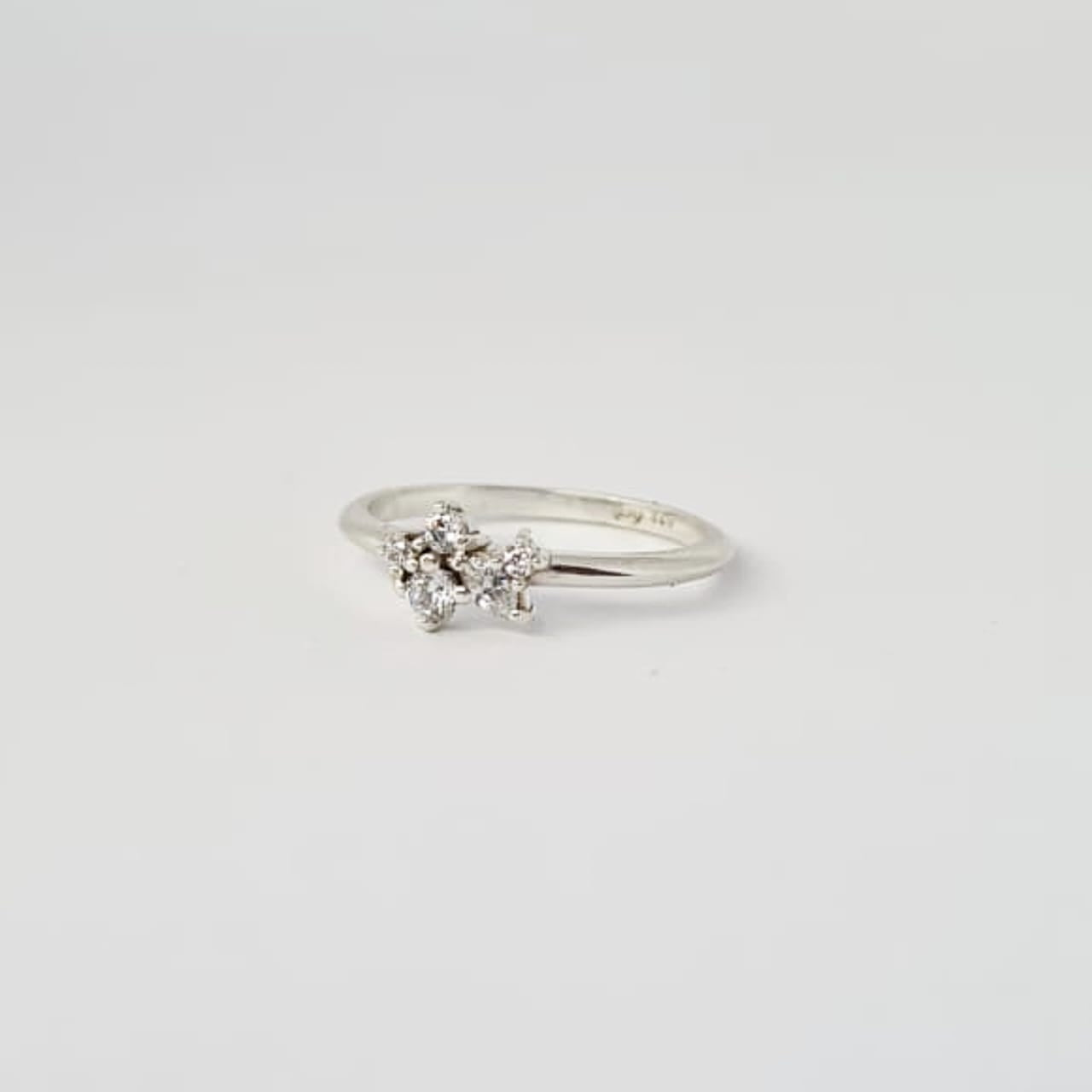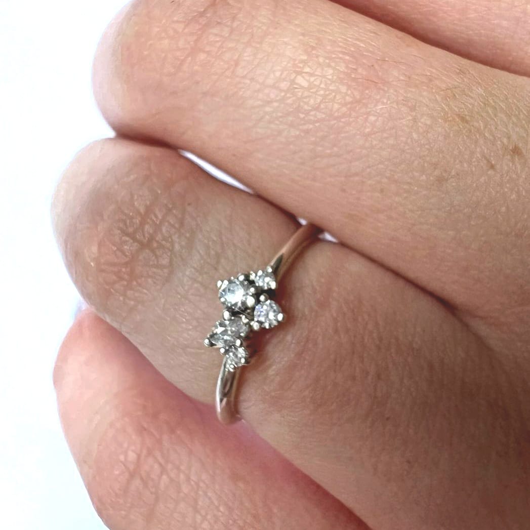 -This ring contains 1 x 1,5mm Brilliant cut, 1 x 2mm Brilliant cut, 1 x 2,5mm Brilliant cut and 1 x 2x4mm Marquise cut Moissanite.