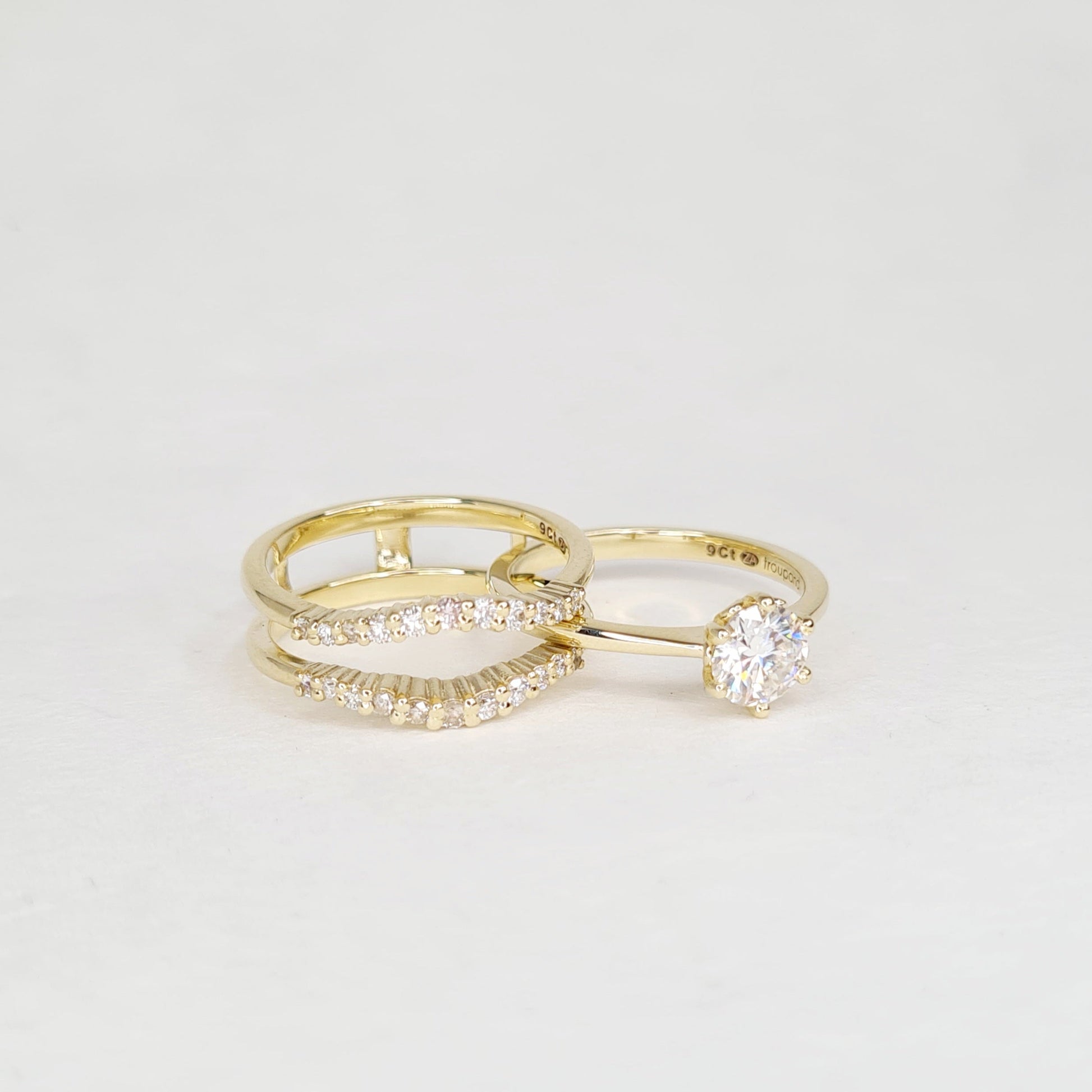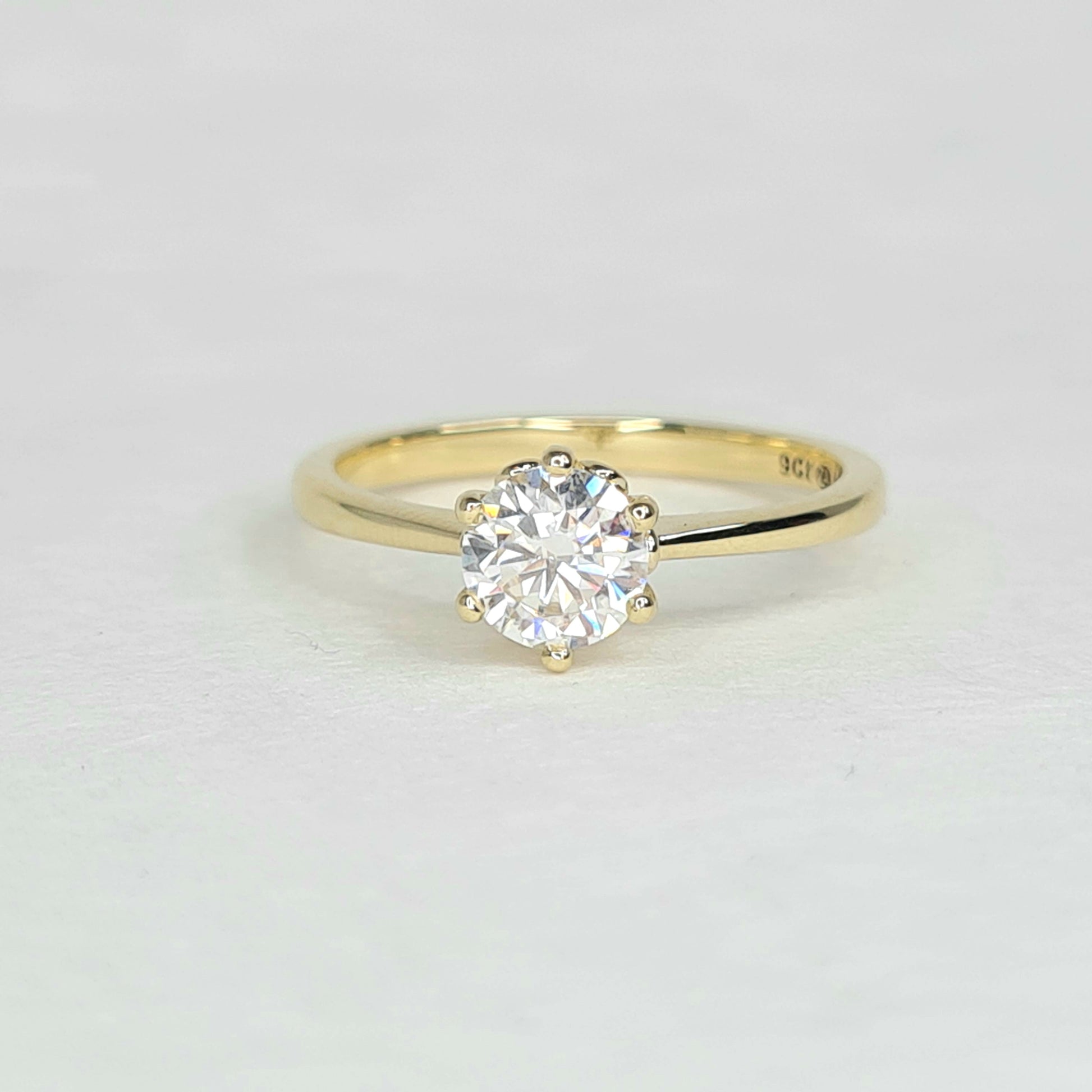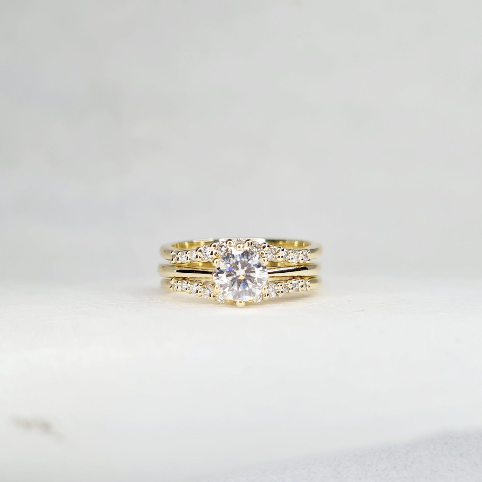 - Main ring holds a beautiful 6mm Clear Brilliant cut Moissanite.